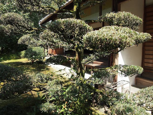 | This photo was taken of the outside of a private house in Kyoto...I love the treatment of the trees and the clipped Azalea balls ! |